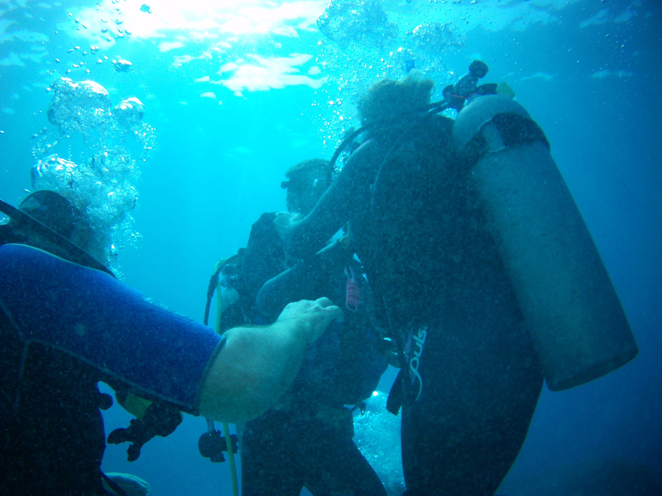 A part of the master course is to use the intermediate deacclimatization between study legs on Mauna Kea for earning the Padi OWD with instructor Dr. Netzer (PADI OWI 955155). Physiology and medicine of scuba diving are also part of the course program titled ” understanding hypoxia from bottom to top”. Regular scuba diving theory will be extended by special medical, technical and psychology knowledge in an extra weekend in Innsbruck end of Jan 2015. Famous scuba diving journalist and long term “Tauchen” EDIC Heinz Käsinger will be teaching on this weekend. The OWD course started already together with the normobaric simulation leg of the Mauna Kea hike in Bad Aibling. There, also between study legs, the pool sessions took place and the theory lessons together with the written test. Now, here on Big Island the free water dives took place at Mahukona and Honaunau. Two days ago every student had sucessfully finished its OWD. Now at Puako house nr 40 and at mile marker 4 in Kona the first free dives made a lot of fun with a close by swiming Manta and many turtles under water. Fun Scuba! Pictures show first free water dive at Mahukona and exercising the Cesar at Honaunau