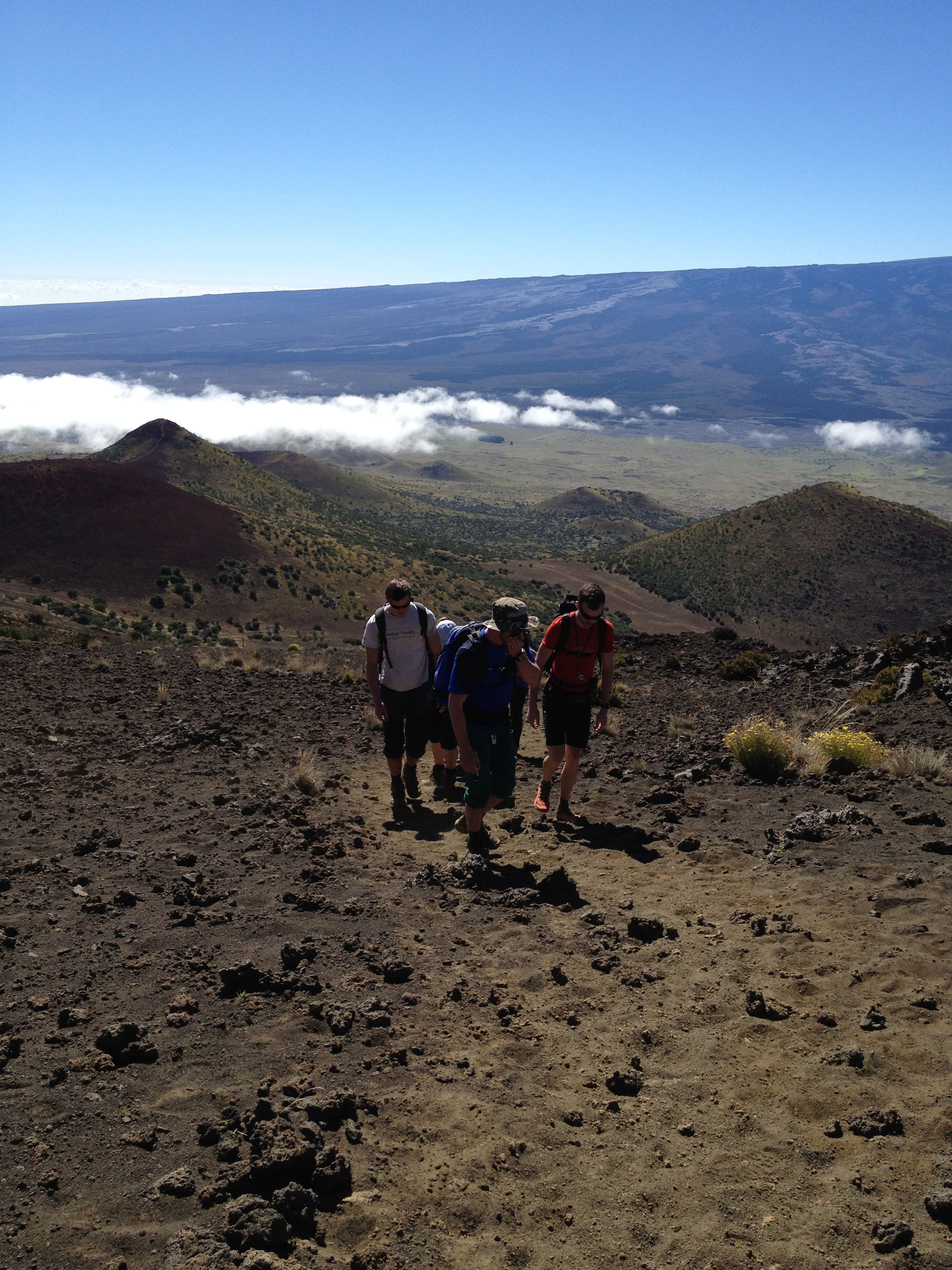 Picture: Students at 3200m on Humuula trail on third study leg. Mauna Loa in the background